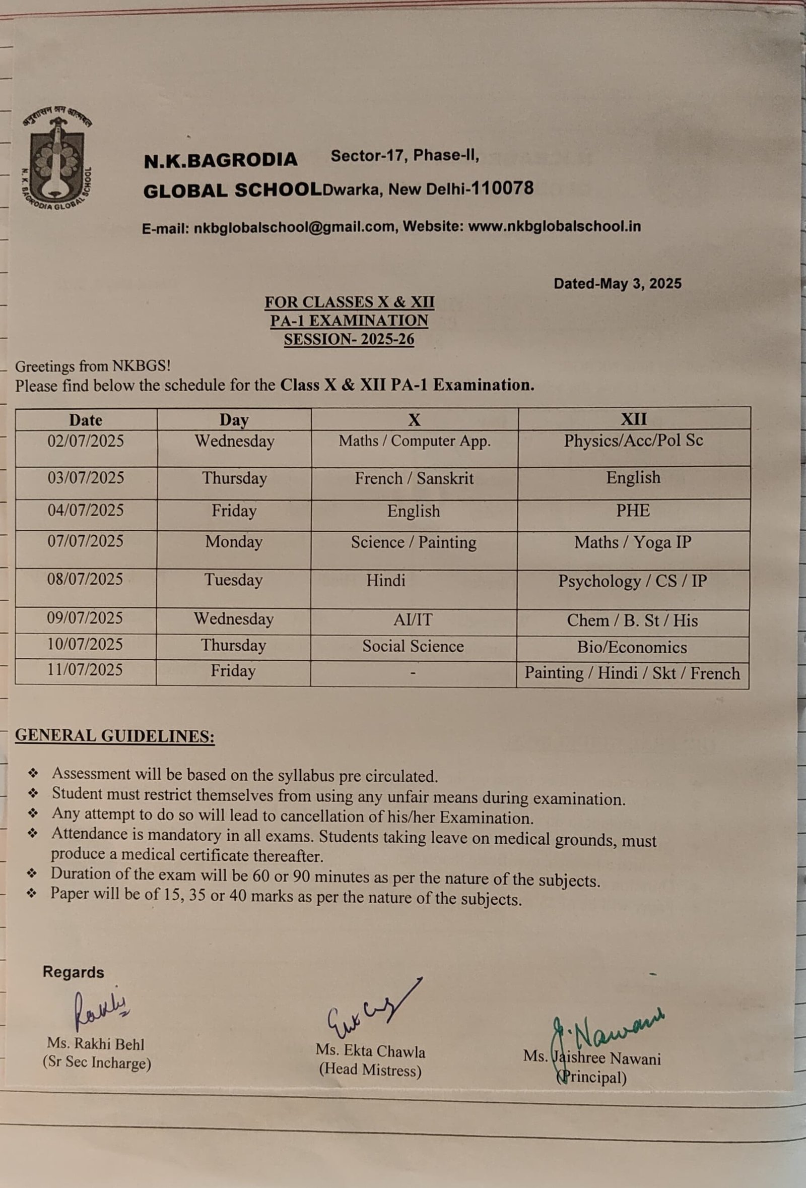 PA-1 Syllabus of Class-XII, Session: 2025-26